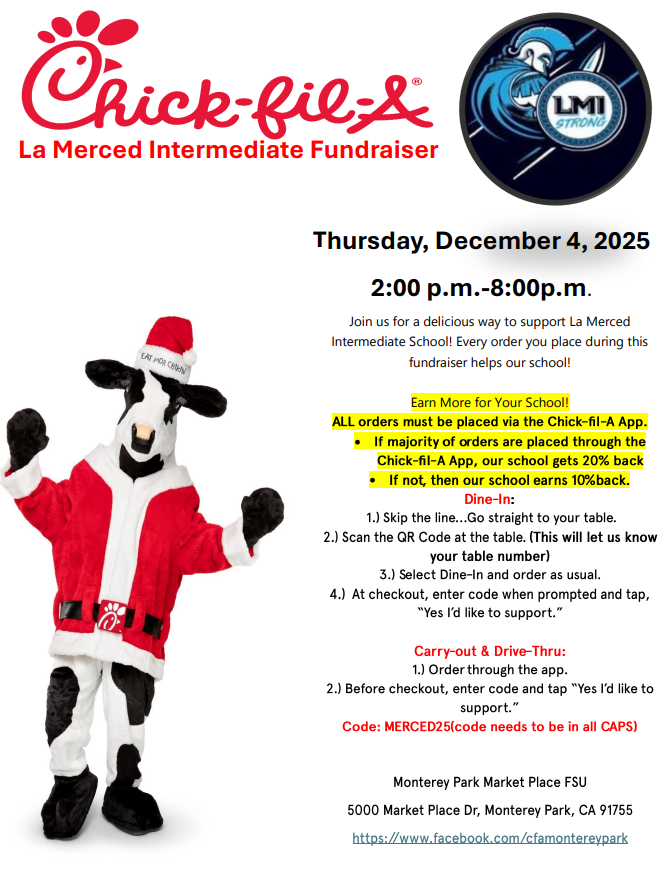 Support LMI's Chick-fil-A Fundraiser on December 4th from 2-8pm!