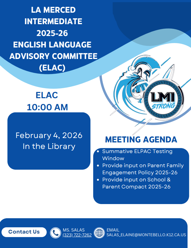 ELAC Meeting - 2/4/26 @ 10am in the library